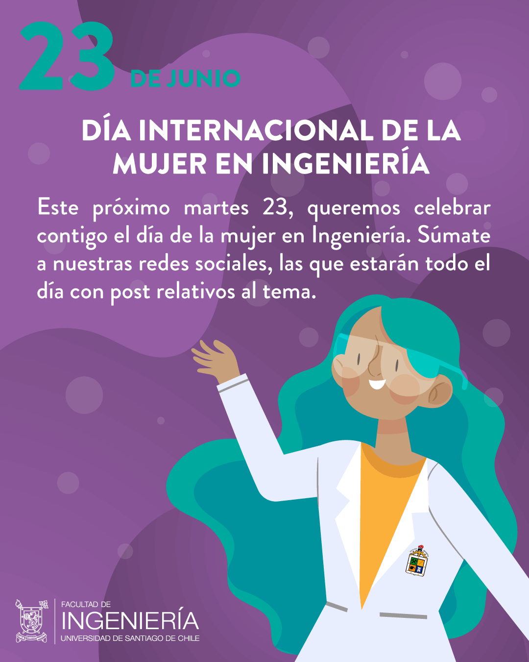 Por segundo año consecutivo, la Facultad de Ingeniería conmemorará el día de la mujer en ingeniería el próximo 23 de junio con múltiples actividades online, que se han organizado en conjunto con los Departamentos Académicos.