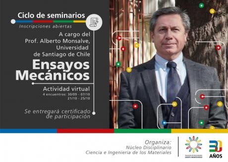 En esta ocasión, el Núcleos Disciplinario Ciencia e Ingeniería de los Materiales dictará un ciclo de seminarios dirigidos a estudiantes de pregrado y posgrado interesados en conocer las herramientas de la técnica. Con más de 200 inscritos de Argentina, Uruguay y otros países , el Dr. Alberto Monsalve, académico del Departamento de Ingeniería Metalúrgica, dictará los seminarios cuyas temáticas van desde el ensayo de tracción, ensayos de impacto y dureza, de anisotropía y tenacidad a la fractura.