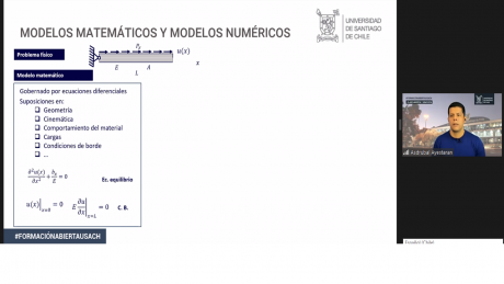 En la instancia, y con 130 personas conectadas, se relató el contexto de las etapas de decisión del modelo matemático a aplicar, para solucionar un problema. “Este es un espacio para compartir conocimiento sobre todo de los conceptos relacionados con mecánica computacional. Sumamente importante es comprender los modelos matemáticos y numéricos, para luego pasar a trabajar con modelados jerárquicos” indicó el profesor Ayestaran.