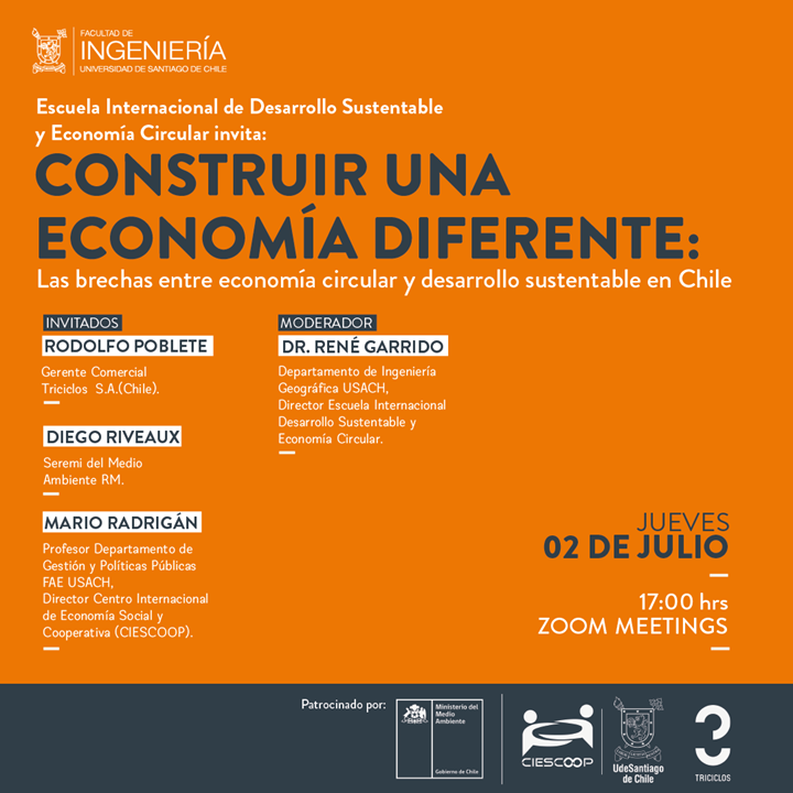 La Escuela Internacional de Desarrollo Sustentable y Economía Circular de la Facultad de Ingeniería realizó el seminario “Construir una Economía Diferente: las brechas entre Economía Circular y el Desarrollo Sustentable en Chile”, que fue moderado por su director, Dr. René Garrido Lazo.