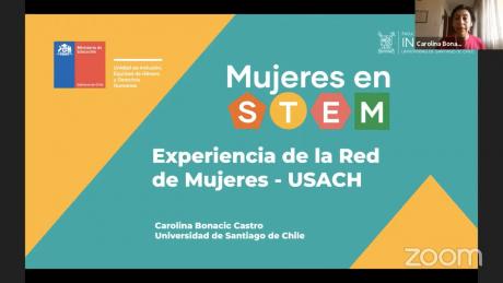 La Dra. Carolina Bonacic, líder de la Red de Mujeres USACH en Ciencia y Tecnología, fue parte de la segunda charla telemática del Ciclo Mujeres en “STEM”, titulada “Atrayendo mujeres a la educación universitaria STEM”. Esta es una iniciativa organizada por el Ministerio de Educación, Ministerio de la Mujer y la Equidad de Género y el Ministerio de Ciencia, Tecnología, Conocimiento e Innovación.