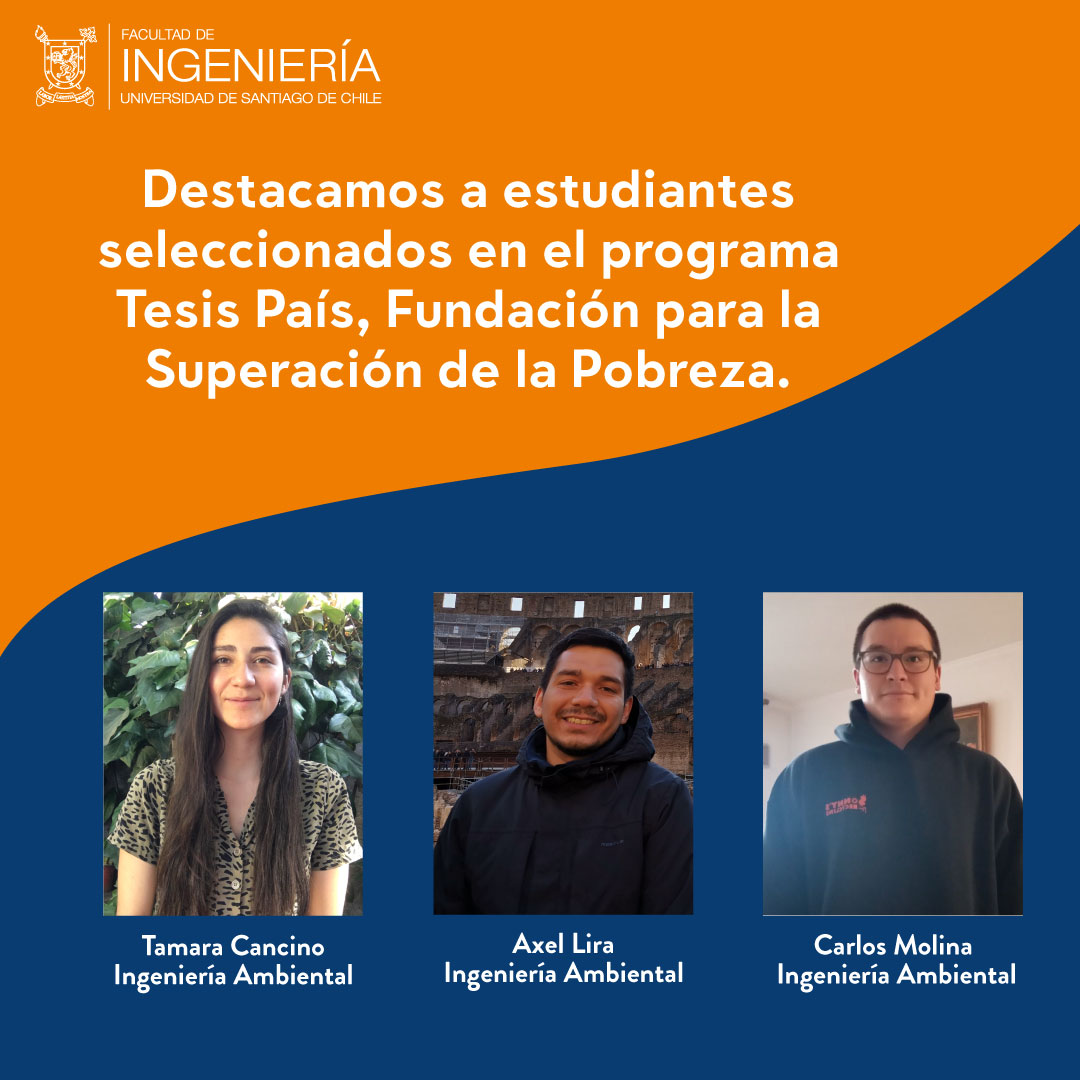 Este año, dos proyectos de Ingeniería Ambiental fueron seleccionados: «Estudio del efecto del uso de plaguicidas y fertilizantes en la agricultura local de la cuenca del lago Budi como posible causa de la pérdida de productividad agrícola del suelo y contaminación del cuerpo de agua”, de los tesistas Tamara Cancino y Carlos Molina y “Vulnerabilidad y adaptación frente al cambio climático en sectores rurales: Diseño de un índice de vulnerabilidad para la comuna de Río Hurtado, Región de Coquimbo”, del estudiante Axel Lira.
