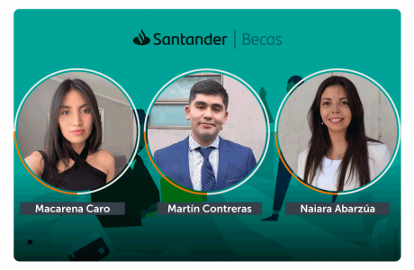 Macarena Caro (Ingeniería Civil en Minas), Naiara Abarzúa (Ingeniería Civil Biomédica) y Martín Contreras (Ingeniería Civil en Industria) son el estudiantado FING que adjudicó la Beca Santander para internacionalizar su carrera durante 2025.