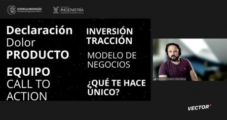 Como metodología para construir este relato, el expositor presentó el Pitch Canvas, una herramienta que es utilizada para modelar, orientar y esclarecer el contenido de la presentación, y la cual se trabaja completando 10 pasos que buscan hacer efectiva la exposición del negocio. Las secciones que contemplan este modelo son: Declaración, Dolor, Producto, Demostración del Producto, Propuesta de Valor, Modelo de Negocios, Tracción de Consumidor, Inversión, Equipo de Trabajo y Llamado a la Acción.