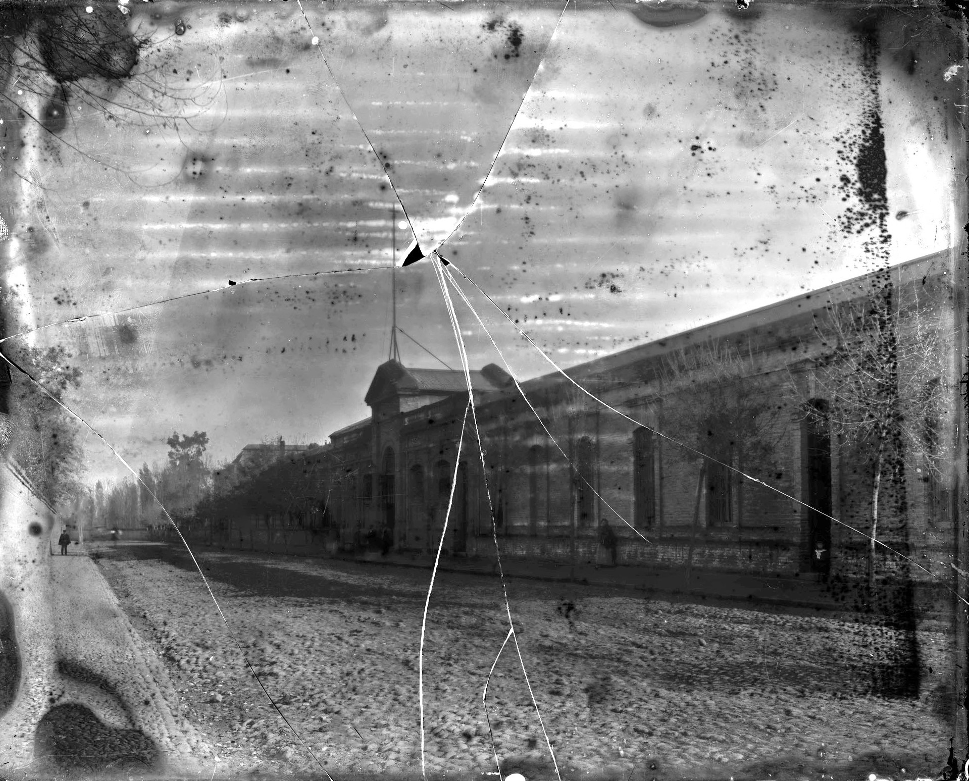Escuela de Artes y Oficios. Santiago, 1901. Entrada principal de la Escuela de Artes y Oficios ubicada en la ex Avenida Chuchunco, actual Av. Ecuador. El edificio inaugurado en 1893 albergó en un comienzo a cientos de estudiantes hombres, entre 15 y 18 años, quienes se especializaron en herrería, modelaje en madera, mecánica y fundición. Durante la primera década del siglo XX la escuela incorporó las especialidades de química, electricidad y mecánica industrial dentro de un plan que conducía al segundo grado técnico. Este nuevo grado, promulgado por el Estatuto de Enseñanza Industrial, se oficializó a través del Decreto 262 del 15 de mayo 1916, diferenciándose así la enseñanza primaria, técnica (o secundaria) e industrial.
