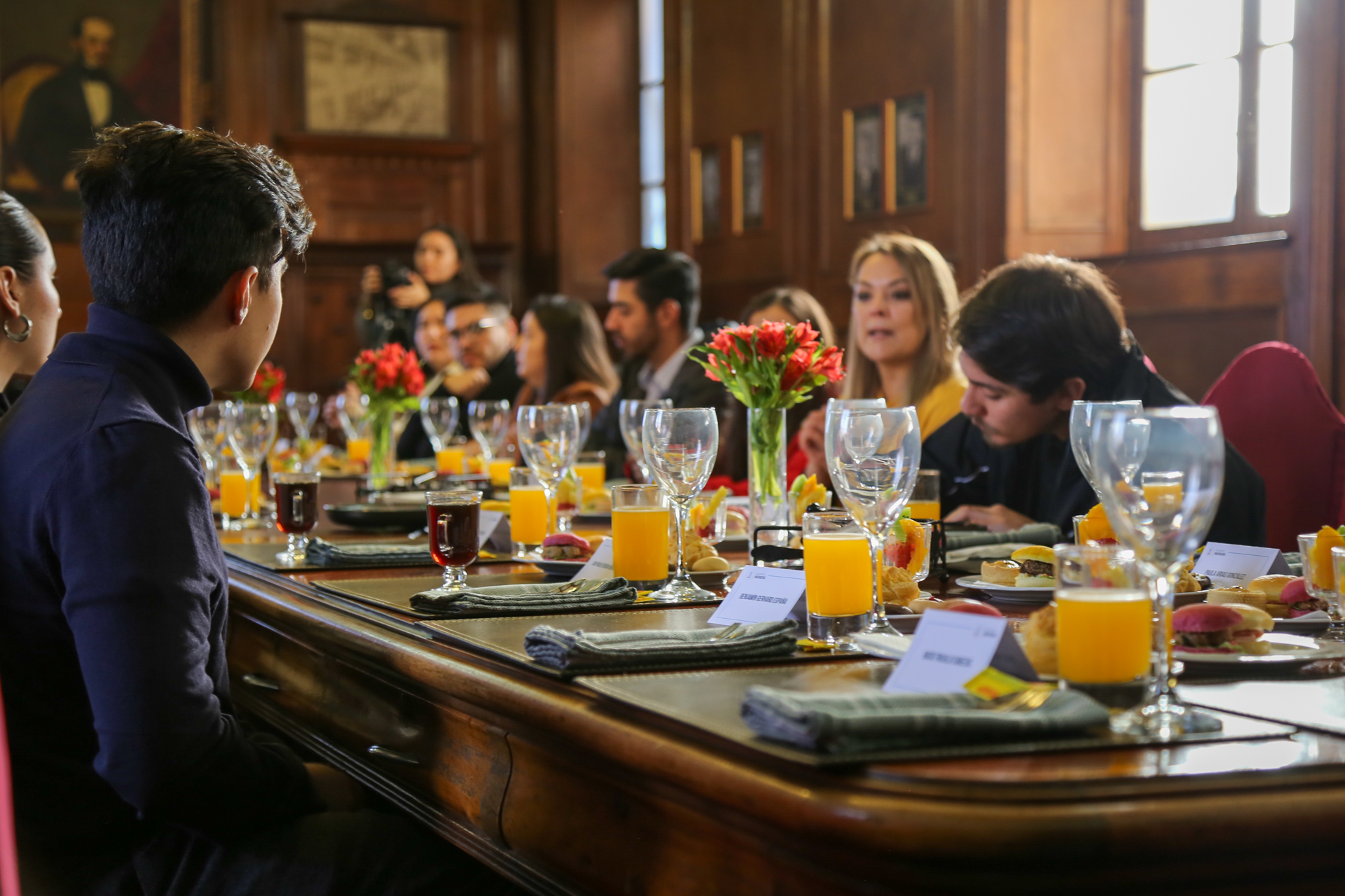 La mañana del 29 de mayo, la Facultad de Ingeniería reunió a trece egresados/as jóvenes en la Sala de Consejo de la Escuela de Artes y Oficios, para participar en un desayuno de camaradería, orientado a recoger nuevas miradas que nutran el proceso de elaboración del Plan Estratégico FING 2025-2030. La instancia fue presidida por la Vicedecana de Investigación, Desarrollo y Postgrado, Dra. Ing. Andrea Mahn Osses, quien asistió en representación del Decano, Dr. Ing. Cristian Vargas Riquelme.