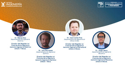 Cabe mencionar que en noviembre de 2021, el Vicedecanato de I+D y Postgrado, en conjunto con el departamento de Ingeniería Eléctrica, realizaron una charla para orientar la postulación a estas becas. Ante este satisfactorio resultado, no cabe más que continuar con estas iniciativas de guía y apoyo para seguir aumentando los índices de adjudicación, que solo hablan del posicionamiento y expertiz de nuestros postgrados en sus respectivas áreas del conocimiento.