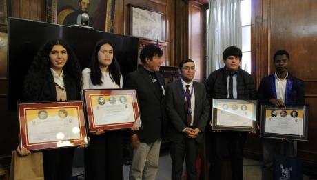 Y el premio “Antoine-Mirzakhani”, que se entregó por primera vez, fue para Constanza Maulén, de Ingeniería Civil Química, quien recibió el diploma de parte del Decano y del Director del Departamento de Ingeniería Química y Bioprocesos, Dr. Pablo Donoso. La estudiante declaró sentirse feliz y honrada e instó a sus compañeros y compañeras a no decaer en el esfuerzo por lograr sus metas. ‘Que el premio lleve el nombre de mujeres destacadas en matemáticas es un honor porque fueron importantes en su época e hicieron un aporte. Muy feliz también porque mis padres están acá y me emociona que la universidad me de este premio por mi esfuerzo, porque siempre doy lo mejor. No se rindan, motívense, todo esfuerzo va a ser recompensado’.