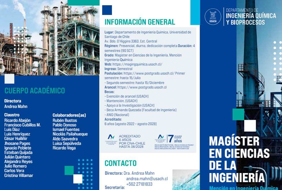 El Programa, de carácter académico, pertenece al Departamento de Ingeniería Química y Bioprocesos y a través de su directora, busca alentar al estudiantado a que aproveche las becas disponibles para cursar estudios de postgrado en este Programa, que cuenta con 25 años de tradición.