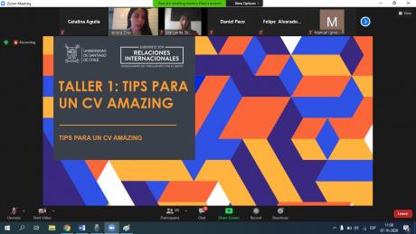 En esta oportunidad se abordó la primera temática: Tips para un CV amazing, liderado por Javiera Díaz, Asistente de Movilidad Estudiantil y Enlace Internacional, que fue realizado a través de la plataforma Zoom y contó con amplia convocatoria y participación estudiantil. En él se evaluó la elaboración de un curriculum exitoso en formato norteamericano y europeo.