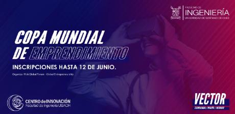 La pre-incubadora de emprendimientos de base científica-tecnológica del Centro de Innovación de la Facultad de Ingeniería de la Universidad de Santiago de Chile, Vector, invita a todos los alumnos de la USACH a participar de la próxima edición de la Entrepreneurship World Cup (EWC), evento que reúne a más de 100 países a lo largo del mundo y busca brindar herramientas, recursos y oportunidades de desarrollo a emprendedores que tengan iniciativas innovadoras.